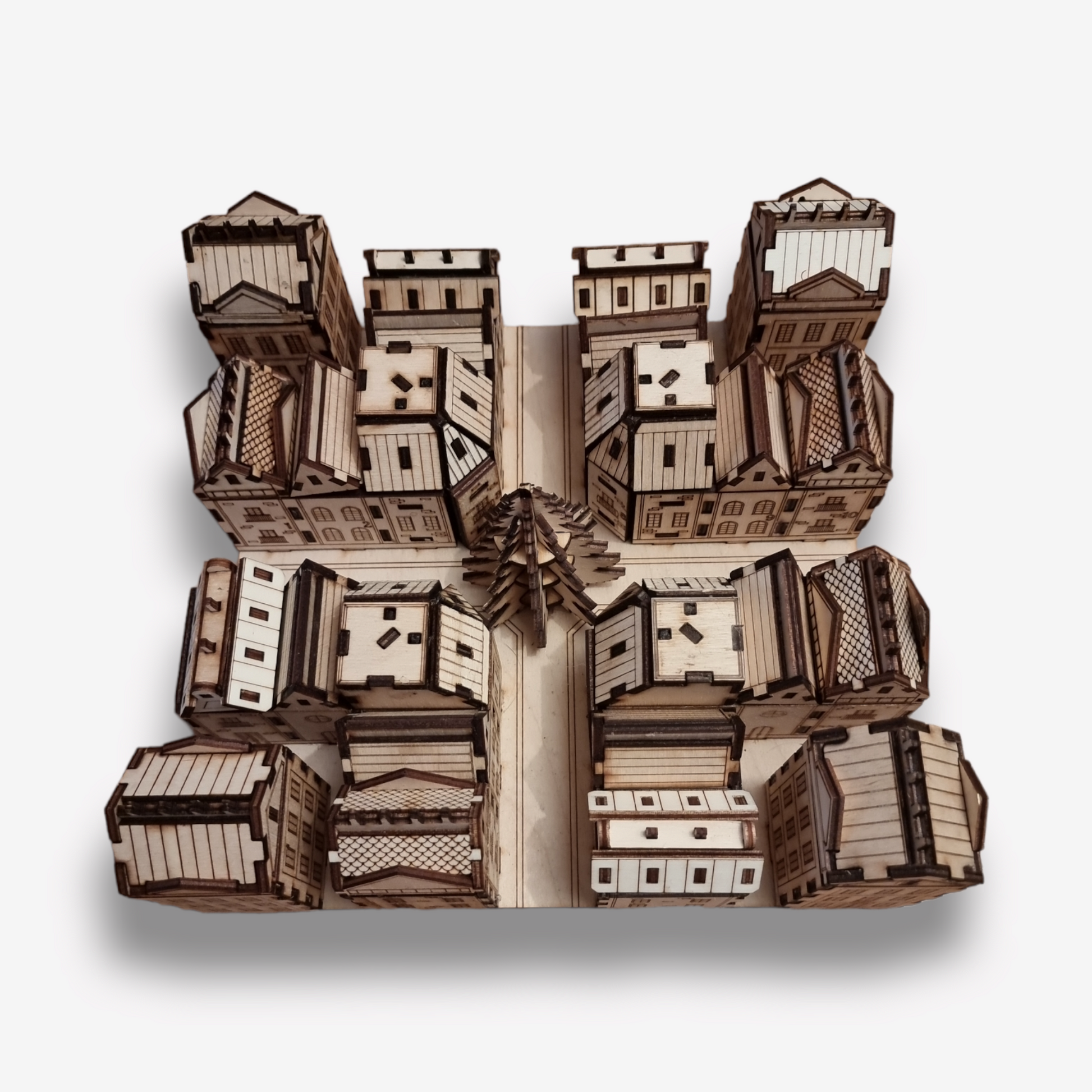 Schöner Adventskalender aus Holz, gestaltet als kleine Stadt mit 4 Blöcken. Hausnummern zwischen 1-24 für alle Tage bis Weihnachten. Jedes Haus hat ein abnehmbares Dach, um kleine Geschenke oder Süßigkeiten hineinzulegen.