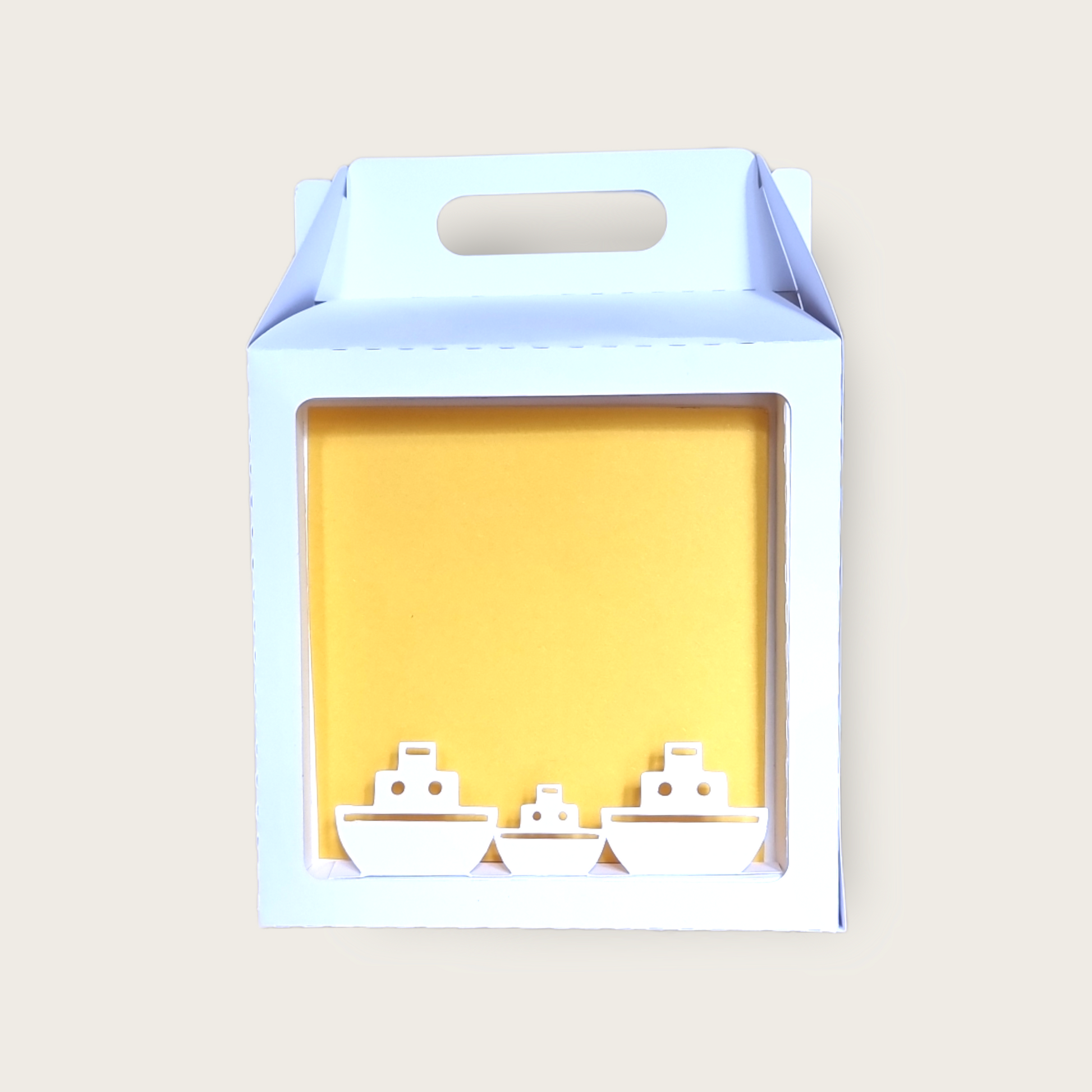 Super süße Geschenkbox mit Bootsmotiv. Ideal zum Aufbewahren nach der Party.