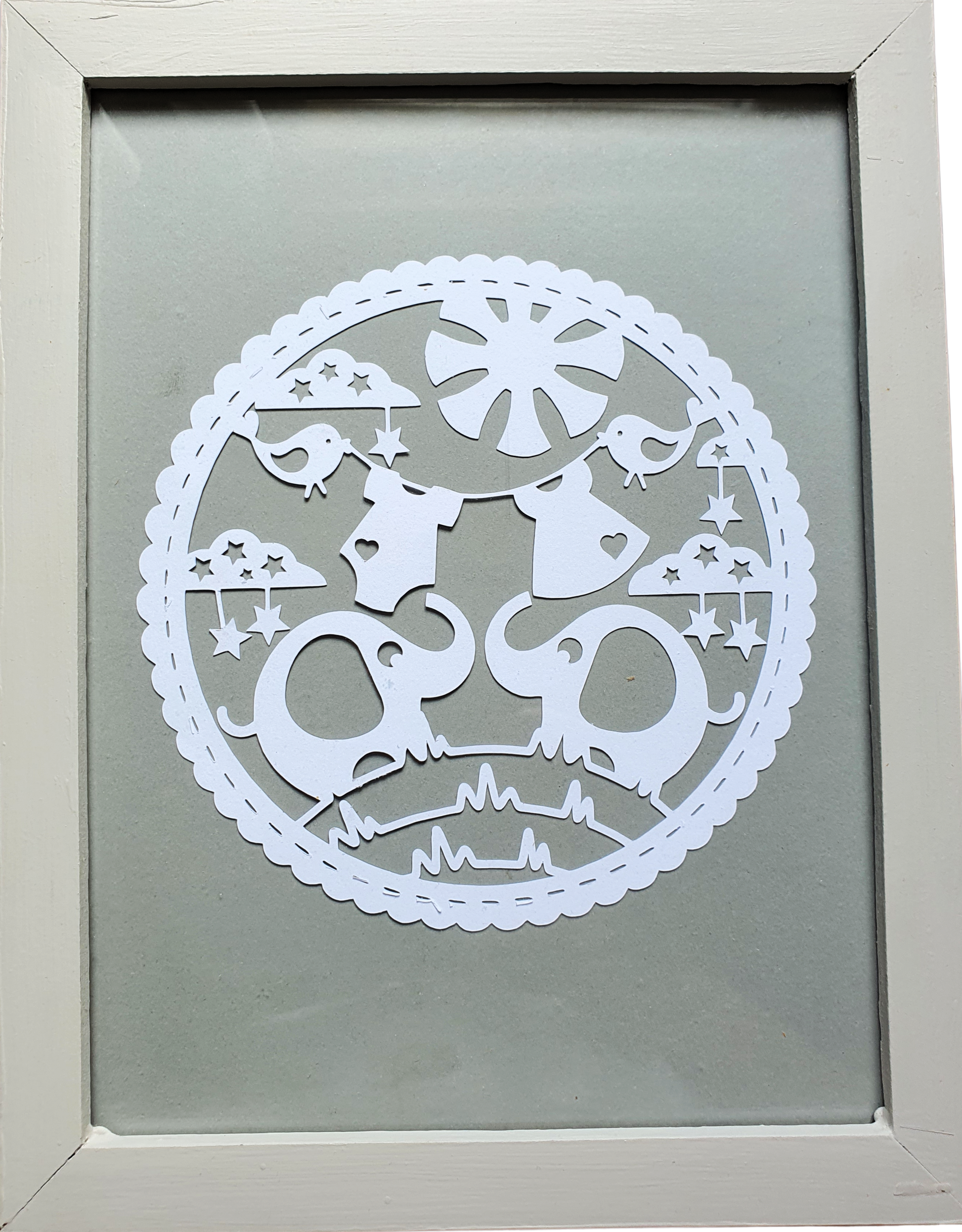 Fin pappersdekoration att använda till egentillverkning av kort eller att sätta in i en tavelram och få en fin tavla till barnrummet.