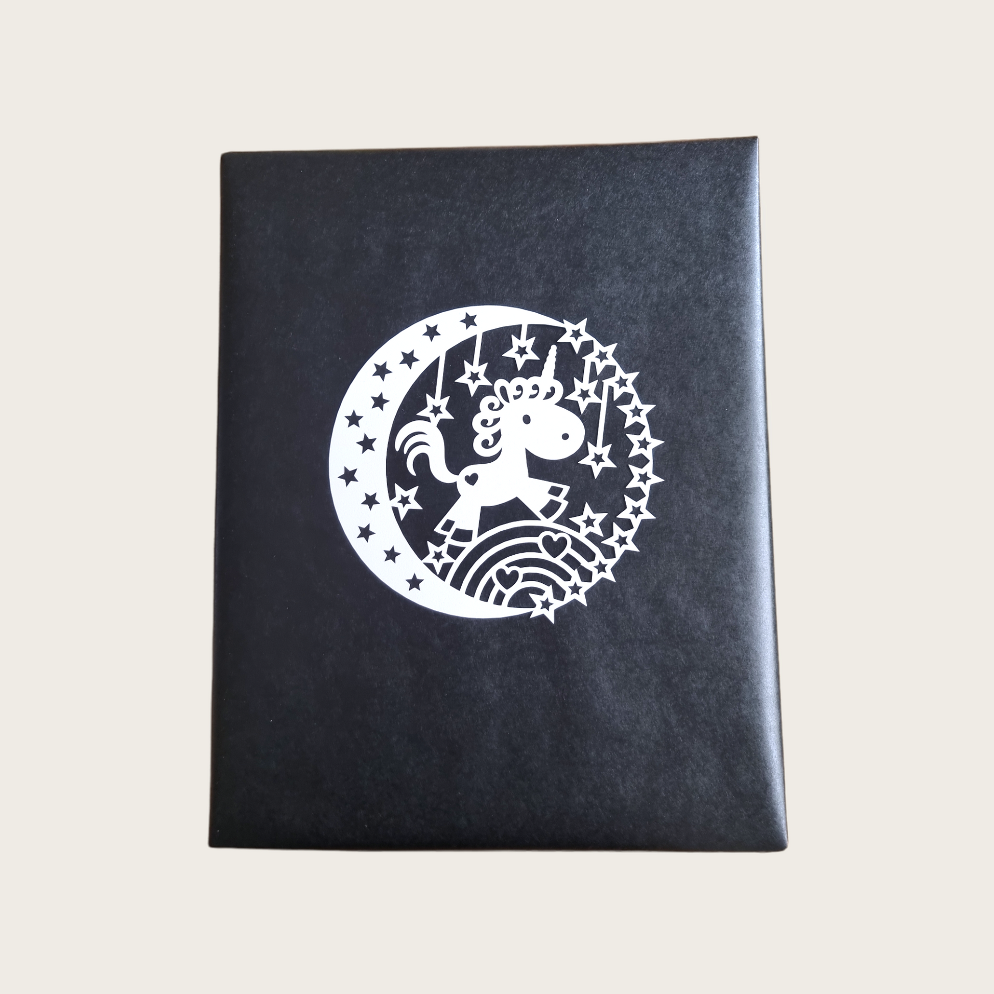 Enhörning utskuren ur kartong. Fin att dekorera kort, presenter eller varför inte göra en tavla till barnrummet.